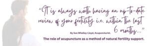 The role of acupuncture as a method of natural fertility support A Question & Answer session with Sue Whalley-Lloyd Q: Can Acupuncture support my natural fertility journey? A: This is a great question and can be answered on many different levels. If you are already on that journey, then your…
