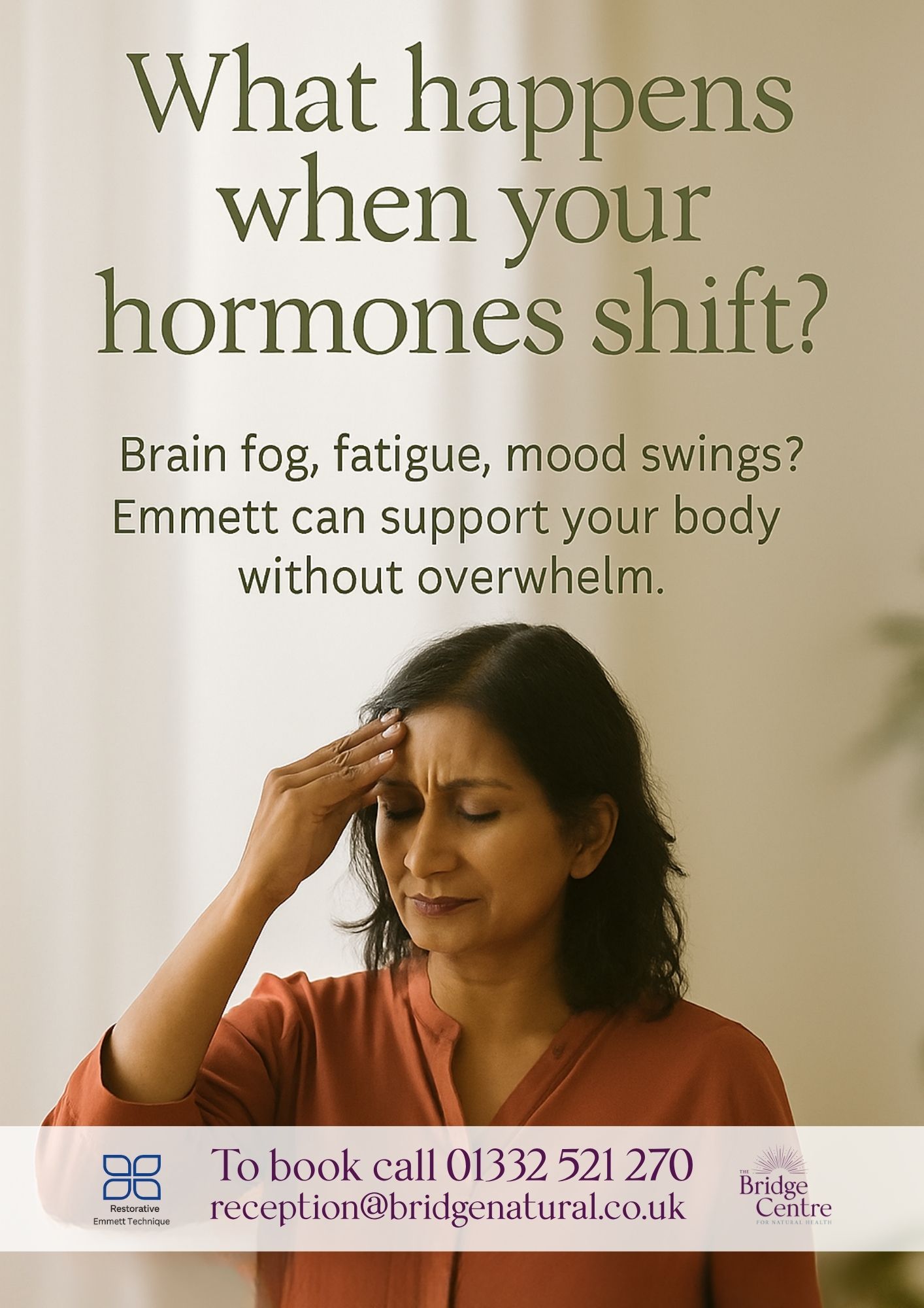 The Emmett Technique is available at the Bridge Centre with Juliet Cooper on a Tuesday & Wednesday.